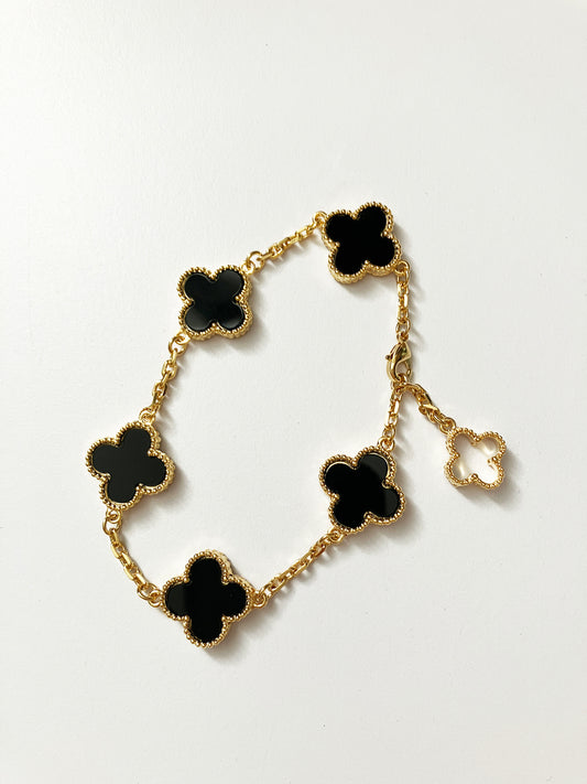 Mixed Mother of Pearl and Onyx Demi Quatrefoil Bracelet in Gold