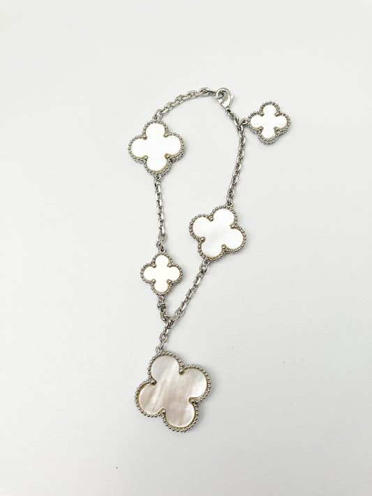 Mother of Pearl Quatrefoil Motif Charm Bracelet in Silver