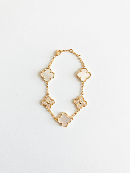 Cubic Zirconia and Mother of Pearl Demi Quatrefoil Bracelet in Gold