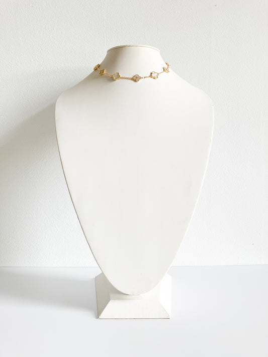 Cubic Zirconia and Mother of Pearl Quatrefoil Choker in Gold