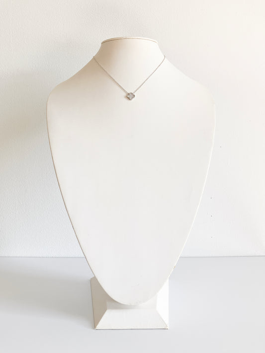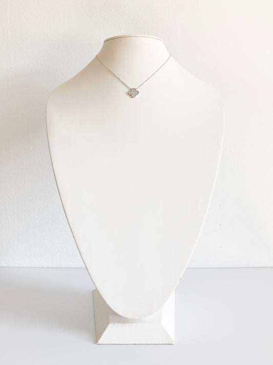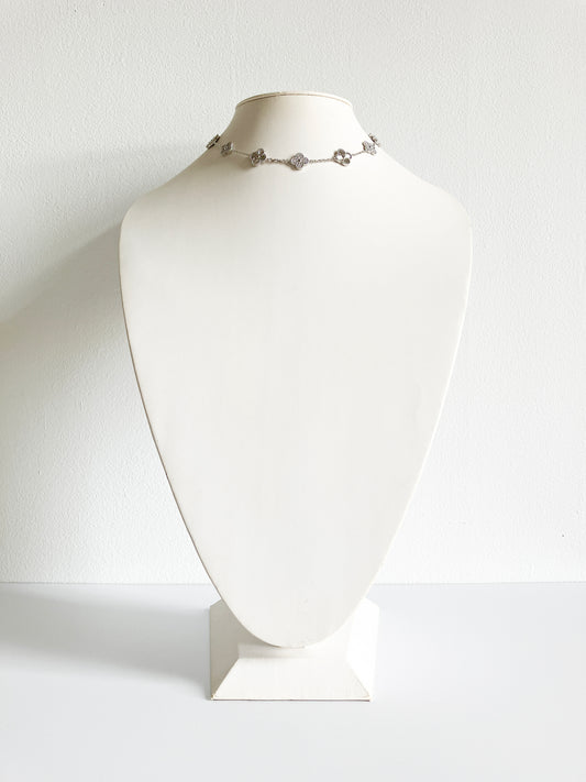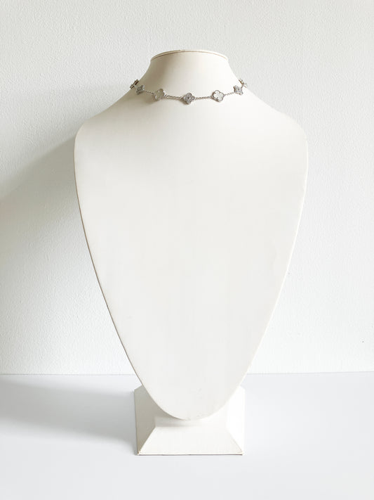 Cubic Zirconia and Mother of Pearl Quatrefoil Choker in Silver