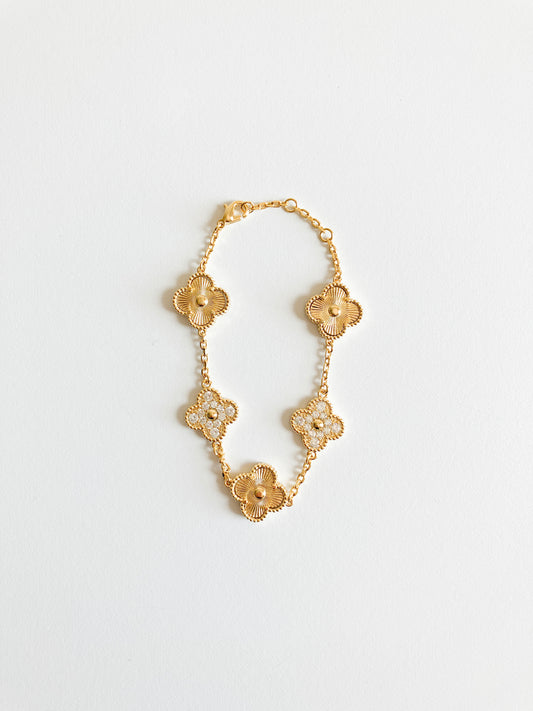 Cubic Zirconia and Radiant Demi Quatrefoil Bracelet in Gold
