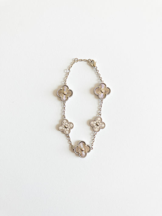 Cubic Zirconia and Radiant Demi Quatrefoil Bracelet in Silver