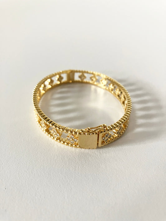 Large Floral Openwork Bangle in Gold and Cubic Zirconia