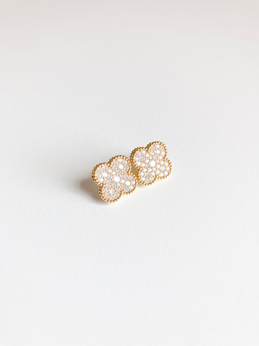 Pave Cubic Zirconia Quatrefoil Earrings with Gold Perlage