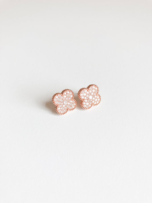 Pave Cubic Zirconia Quatrefoil Earrings with Rose Gold Milgrain
