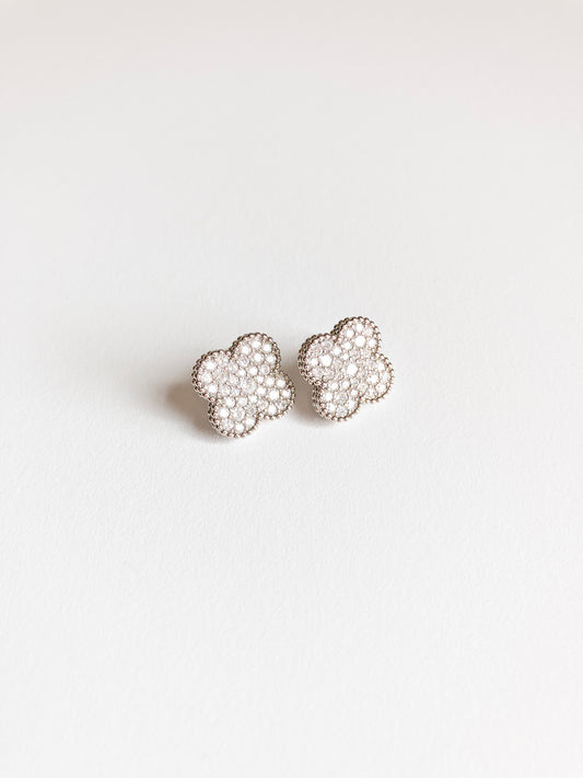 Pave Cubic Zirconia Quatrefoil Earrings with Silver Milgrain