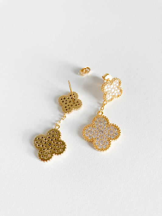 Cubic Zirconia Quatrefoil Double Drop Earrings in Gold