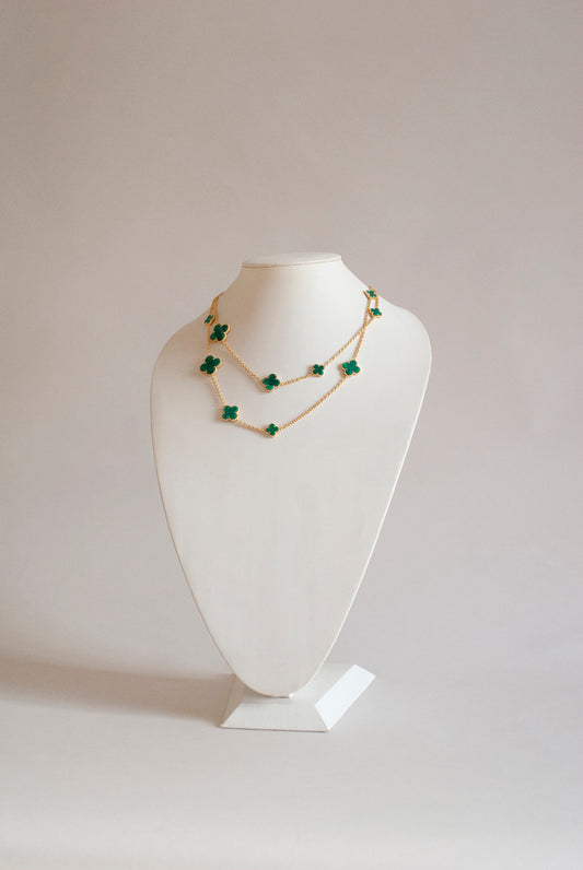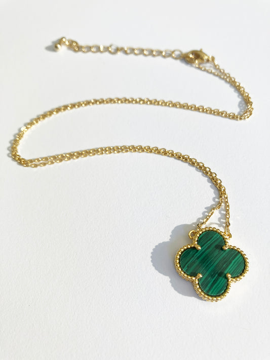Mixed Size Malachite Quatrefoil Gold Plated Necklace