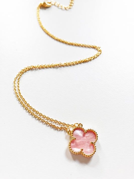 Adjustable Small Pink Mother of Pearl Quatrefoil Motif Pendant