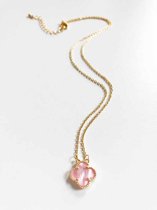 Adjustable Demi Pink Mother of Pearl Quatrefoil Motif Pendant