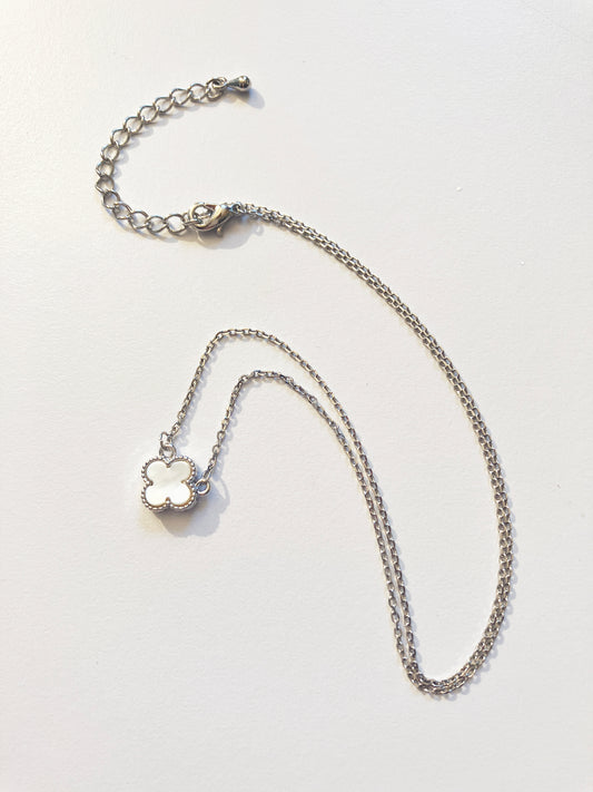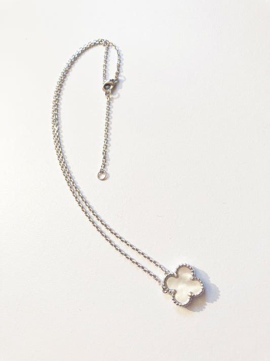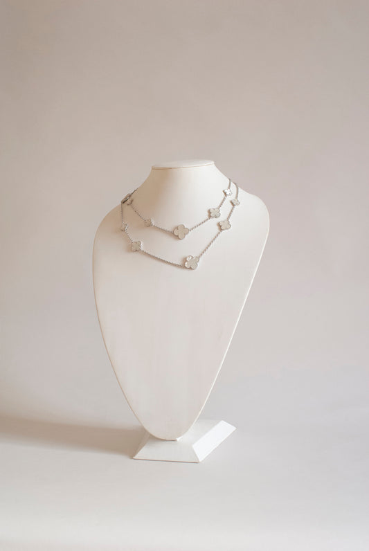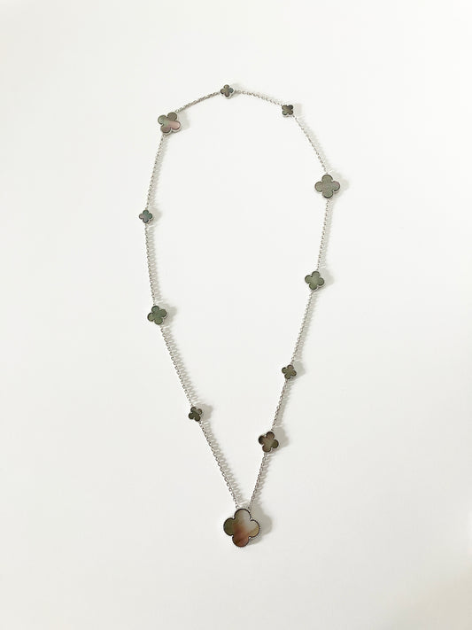 Mixed Size Mother of Pearl Quatrefoil Silver Plated Necklace