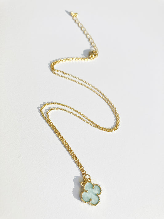 Adjustable Small Blue Mother of Pearl Quatrefoil Motif Pendant