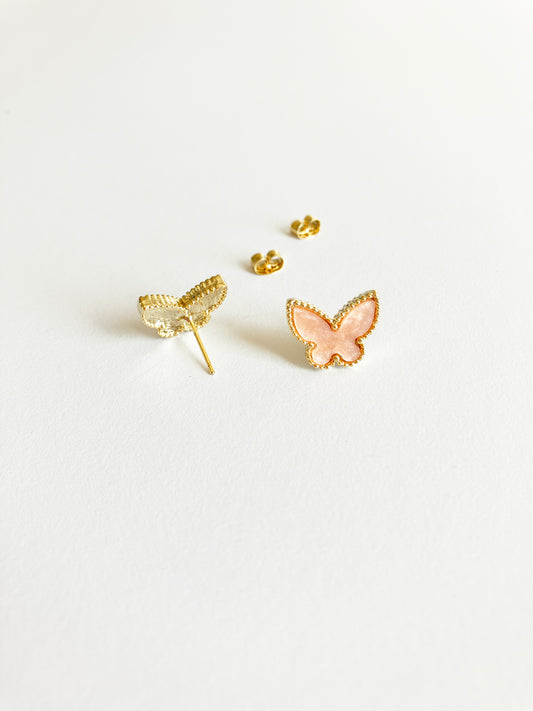 Pink Mother of Pearl Butterfly Earrings in Gold