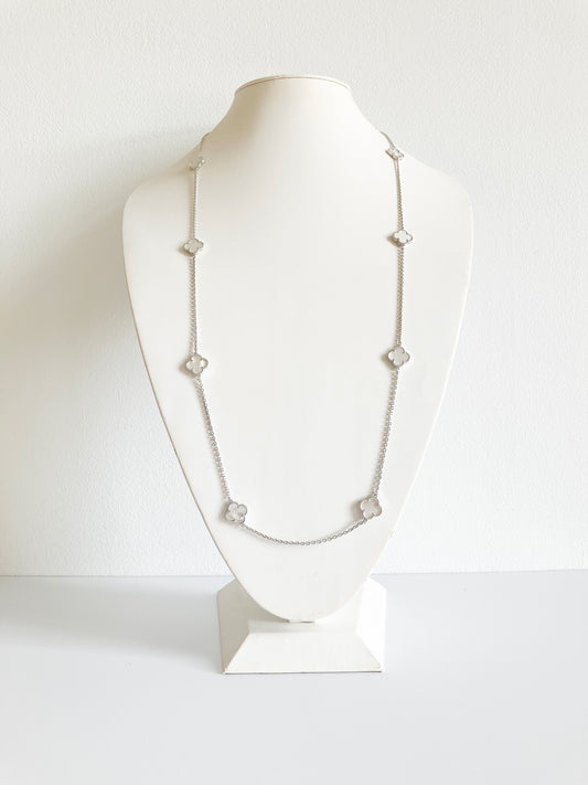 Mother of Pearl Quatrefoil Rope Necklace in Silver