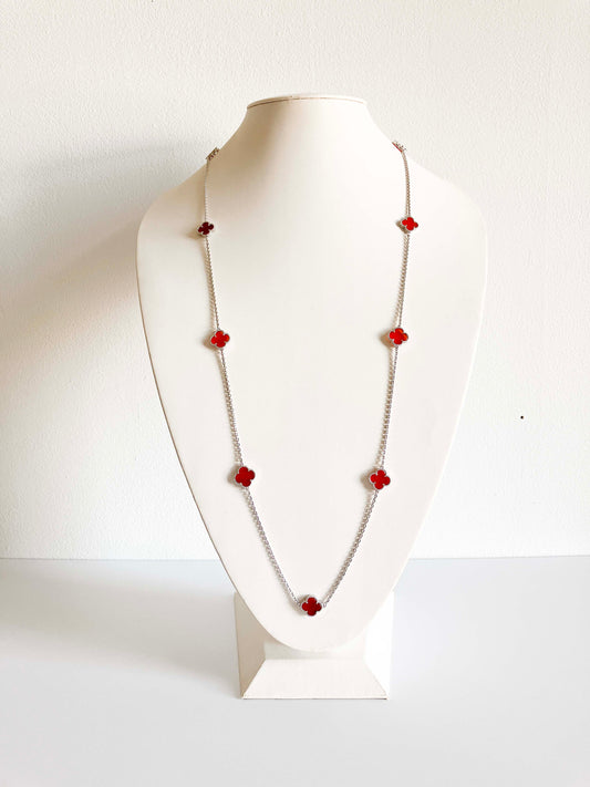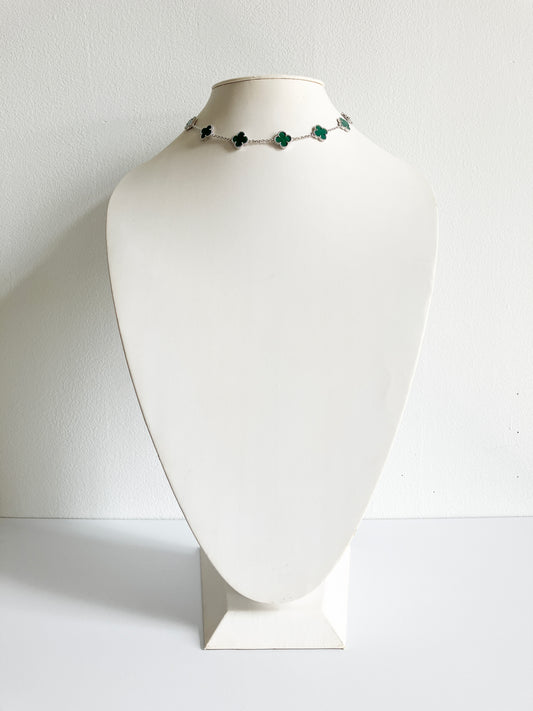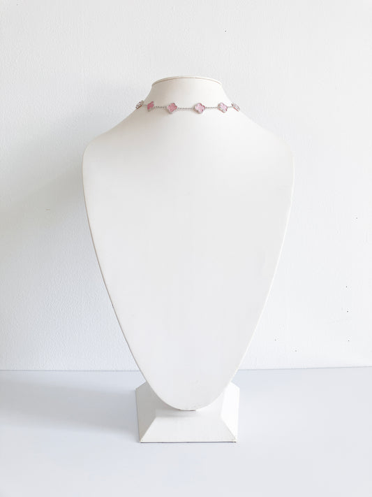 Pink Mother of Pearl Quatrefoil Choker in Silver