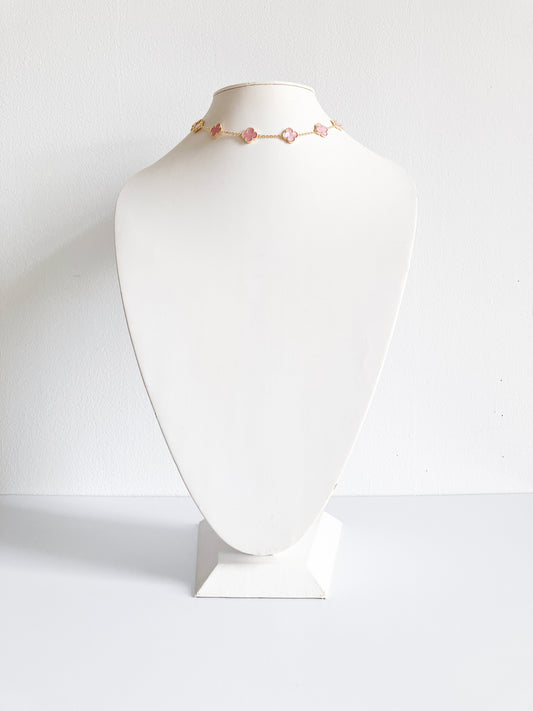 Pink Mother of Pearl Quatrefoil Choker in Gold