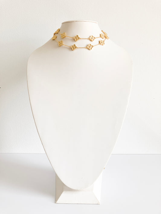 Textured Gold Quatrefoil Motif Necklace
