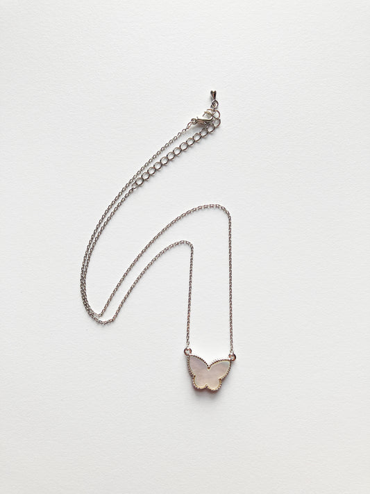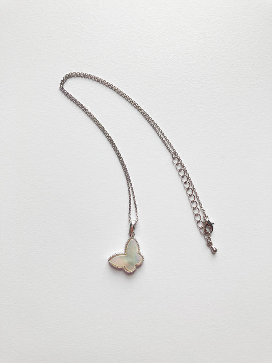 Adjustable Mother of Pearl Butterfly Motif Charm Pendant in Silver