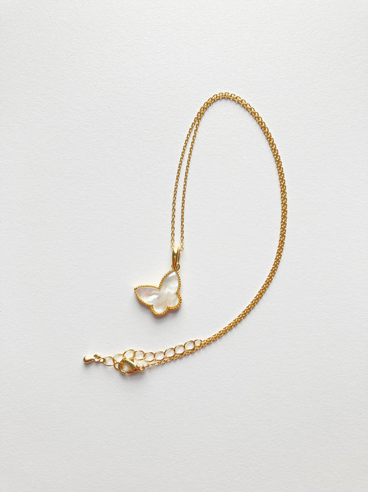 Adjustable Mother of Pearl Butterfly Motif Charm Pendant in Gold