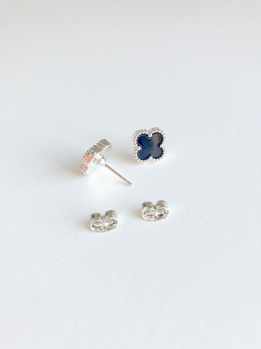 Bijou Onyx Quatrefoil Stud Earrings in Silver