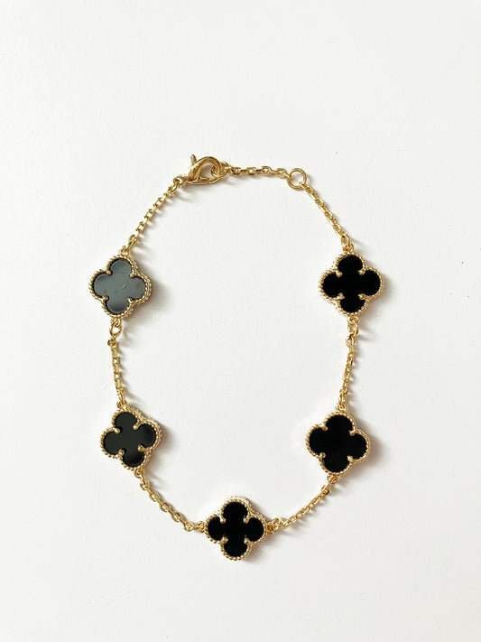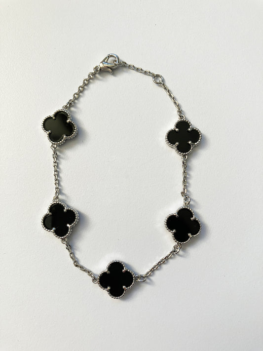 Adjustable 7.5" Onyx Quatrefoil Bracelet
