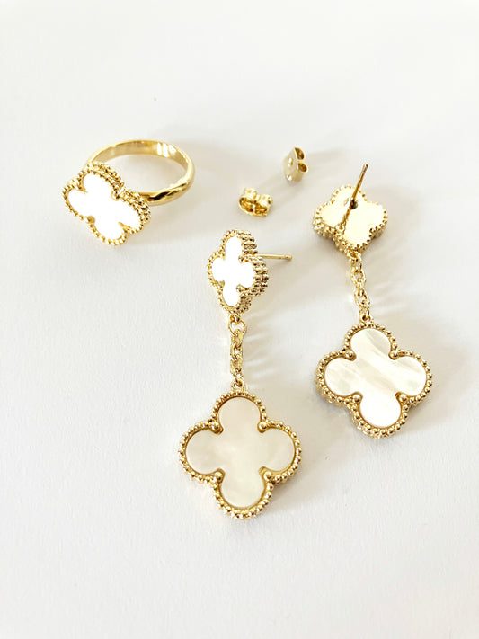 Quatrefoil Motif Gold and Mother of Pearl Demi Parure