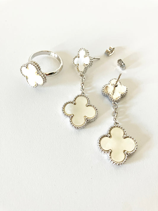 Quatrefoil Motif Silver and Mother of Pearl Demi Parure