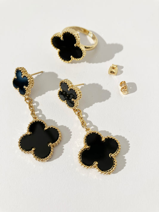 Quatrefoil Motif Gold and Onyx Demi Parure