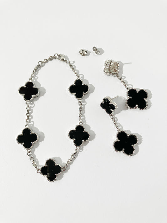Quatrefoil Motif Silver and Onyx Demi Parure