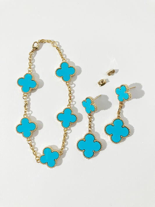 Quatrefoil Motif Gold and Turquoise Demi Parure