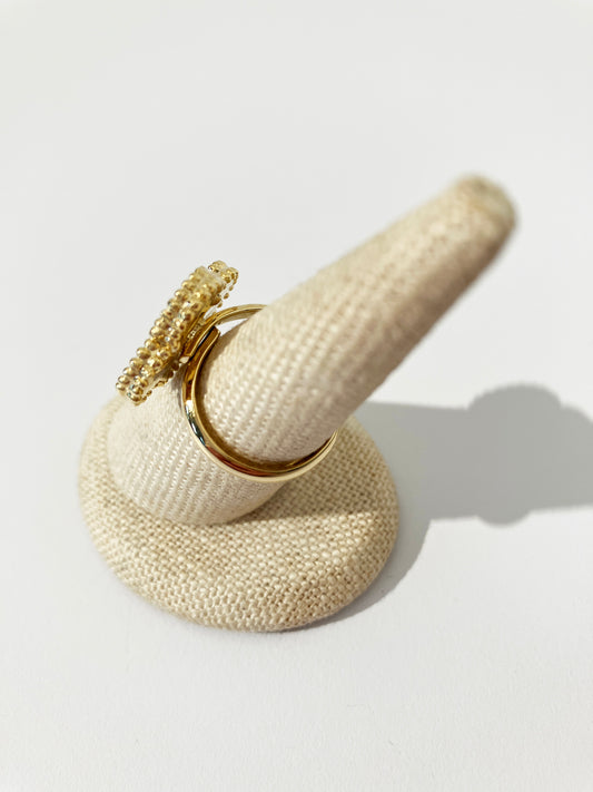 Adjustable Demi Mother of Pearl Quatrefoil Motif Ring in Gold