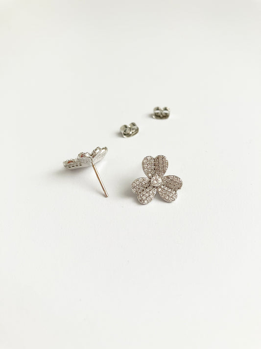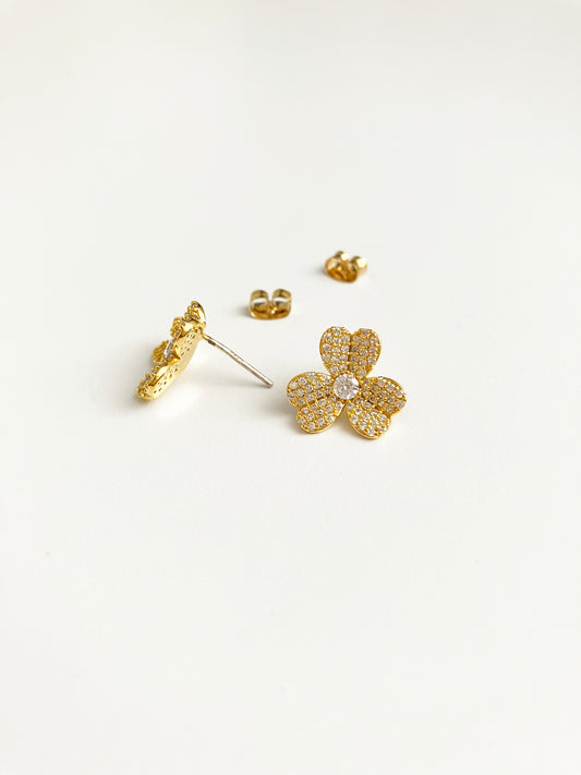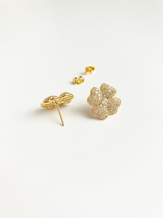 Four Leaf Clover of Hearts Earrings in Gold and Cubic Zirconium