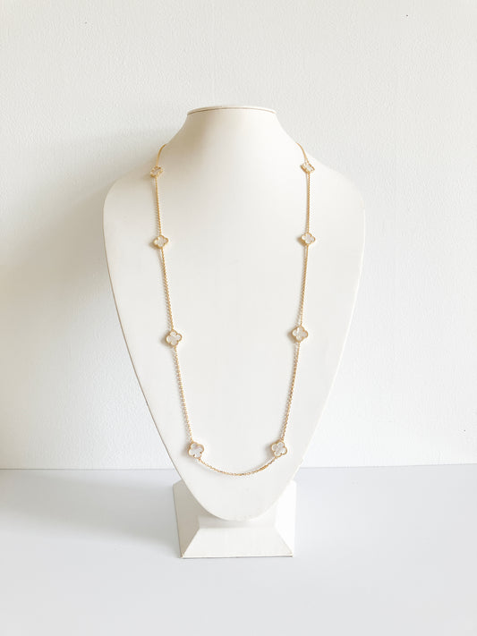 Mother of Pearl Quatrefoil Rope Necklace in Gold