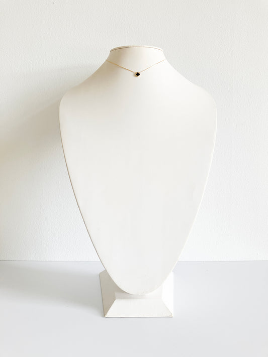 Adjustable Bijou Onyx Quatrefoil Motif Pendant in Silver