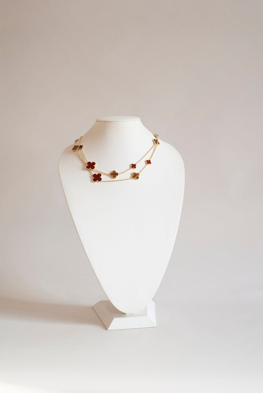 Mixed Size Tiger Eye and Carnelian Alhambra Gold Plated Necklace