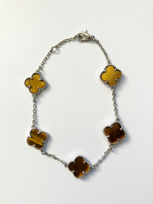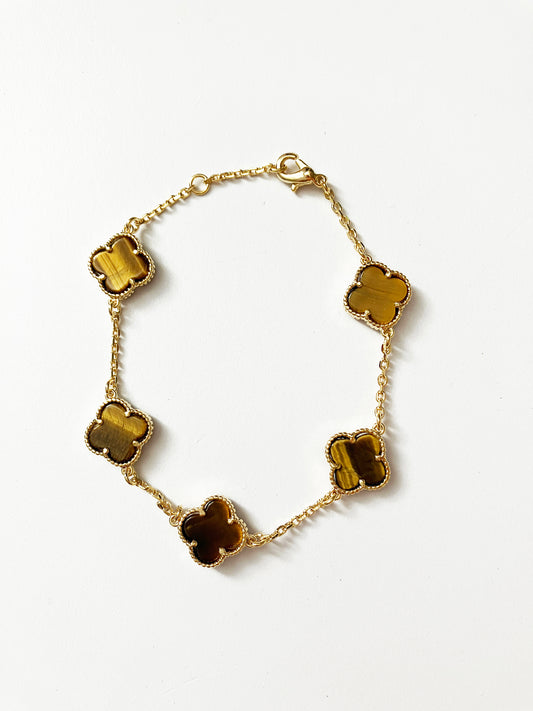 Adjustable 7.5" Tiger Eye Quatrefoil Bracelet