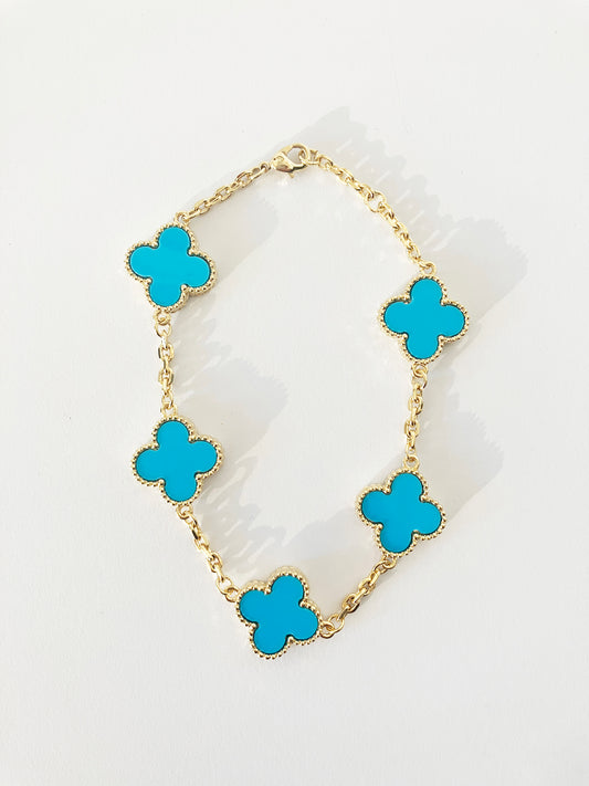 Adjustable 8.5" Turquoise Quatrefoil Bracelet