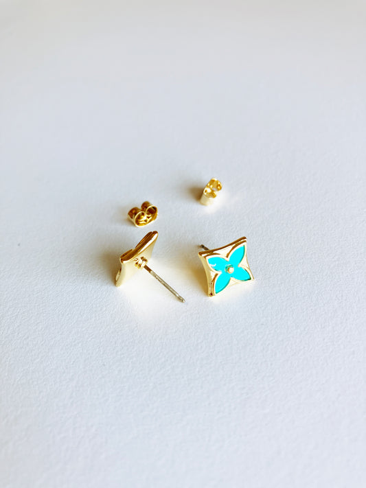 Quatrefoil Motif Gold and Turquoise Demi Parure