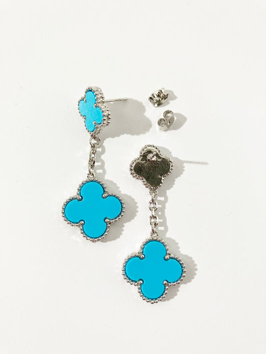 Drop Turquoise and Silver Quatrefoil Motif Earrings