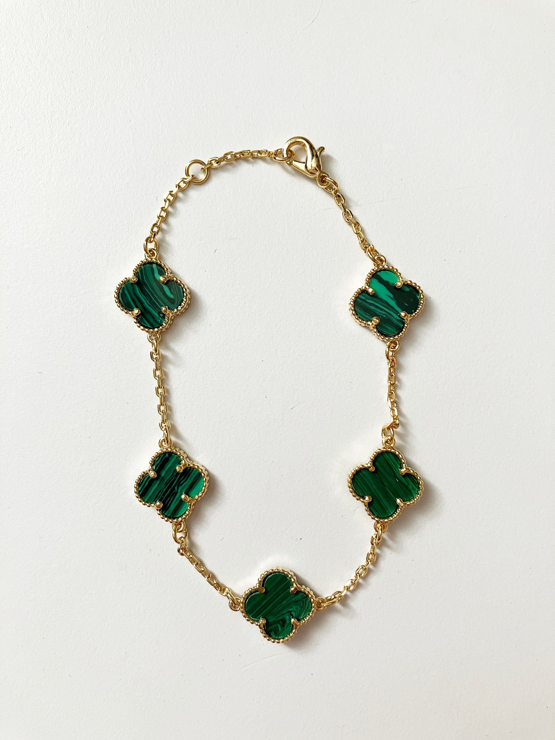 Adjustable 7.5" Malachite Quatrefoil Bracelet