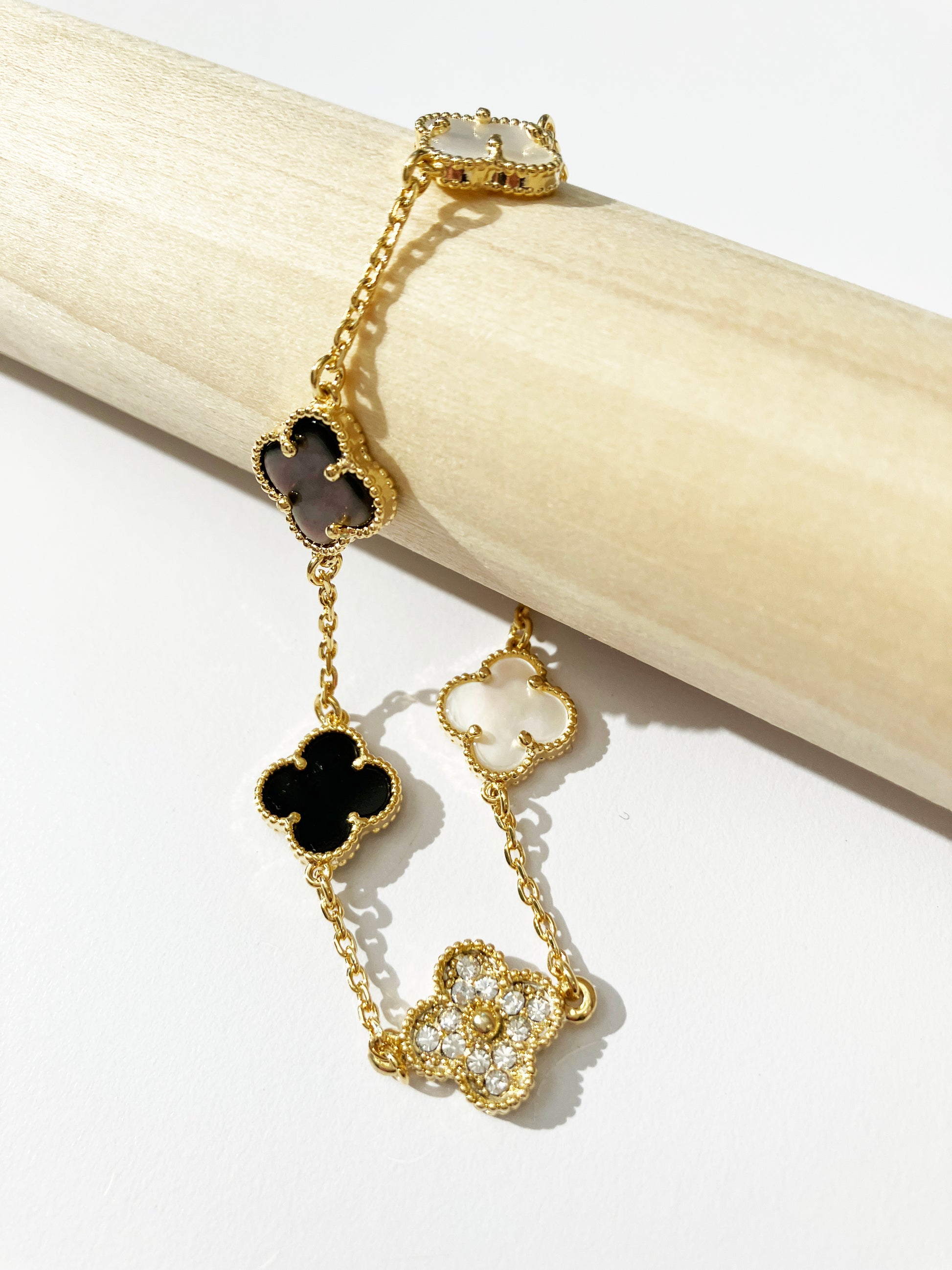 Pair with a mother of pearl, onyx, and cubic zirconium bracelet!
