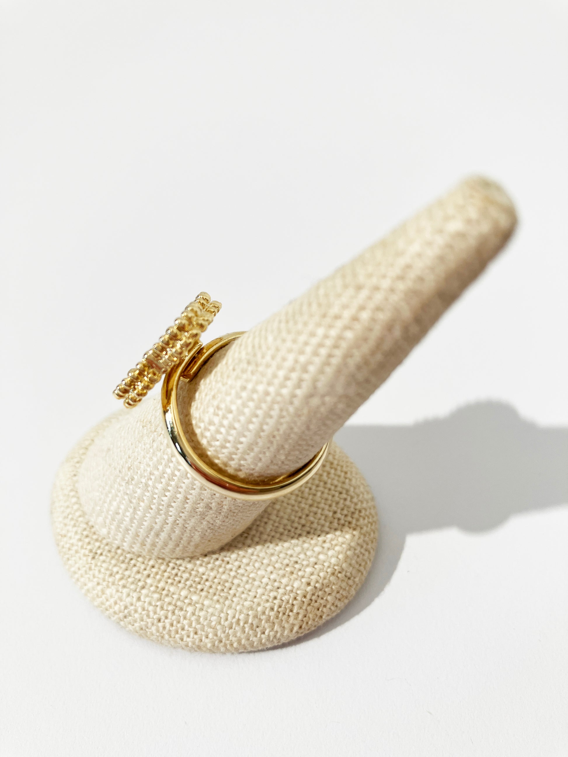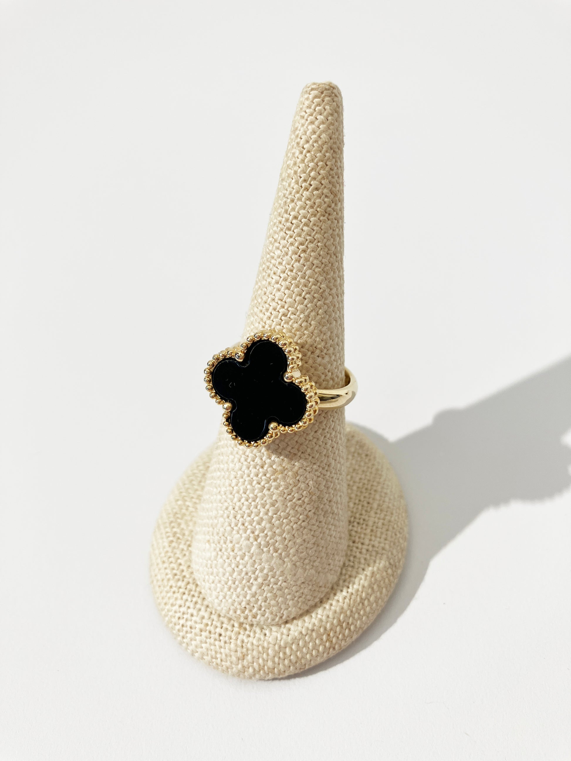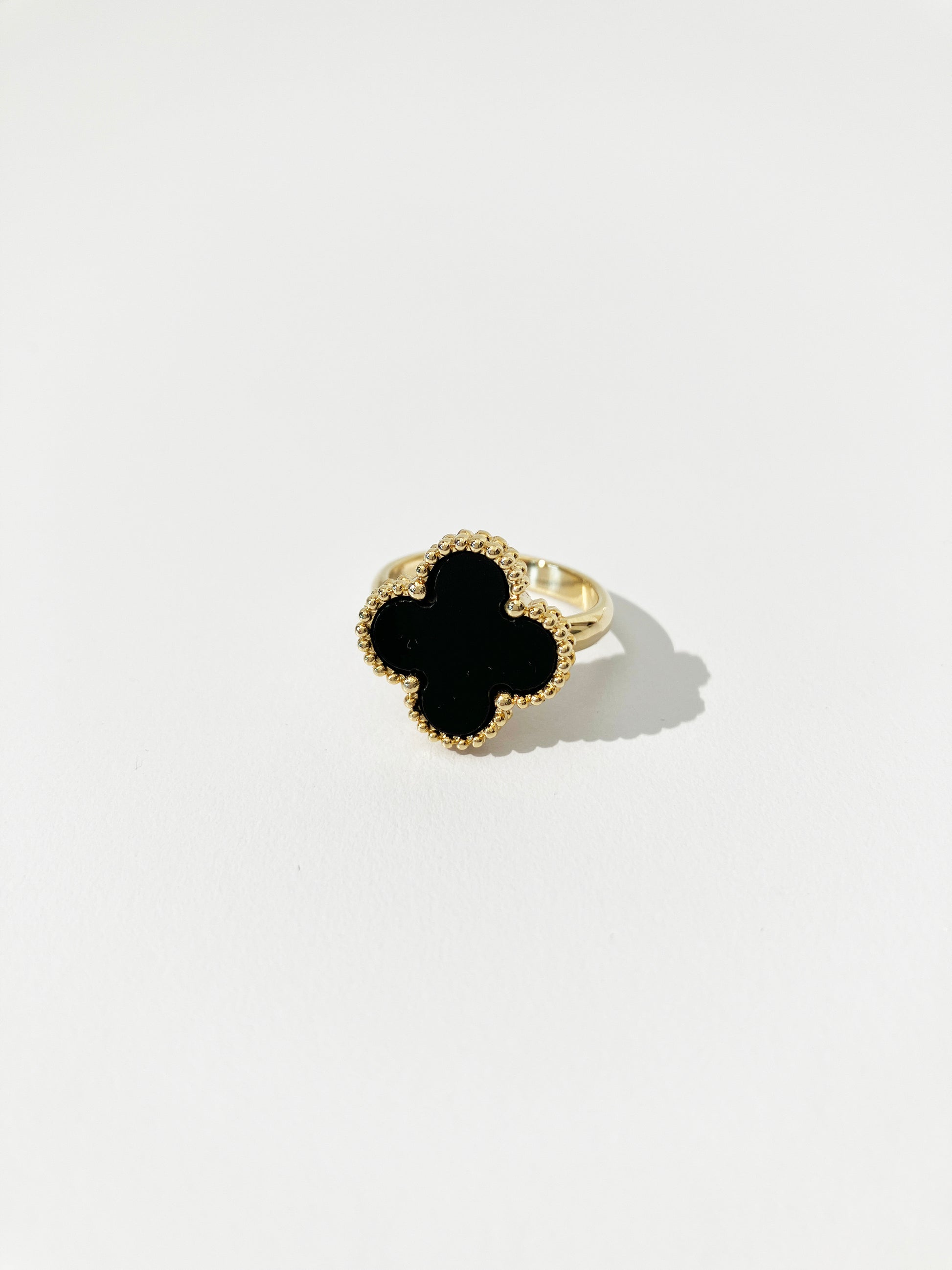 Adjustable Small Onyx Quatrefoil Motif Ring in Gold