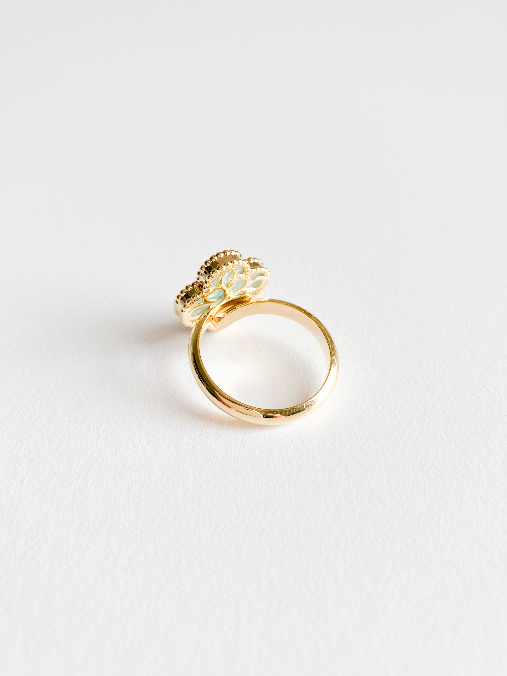 Blue Mother of Pearl Demi Quatrefoil Ring in Gold
