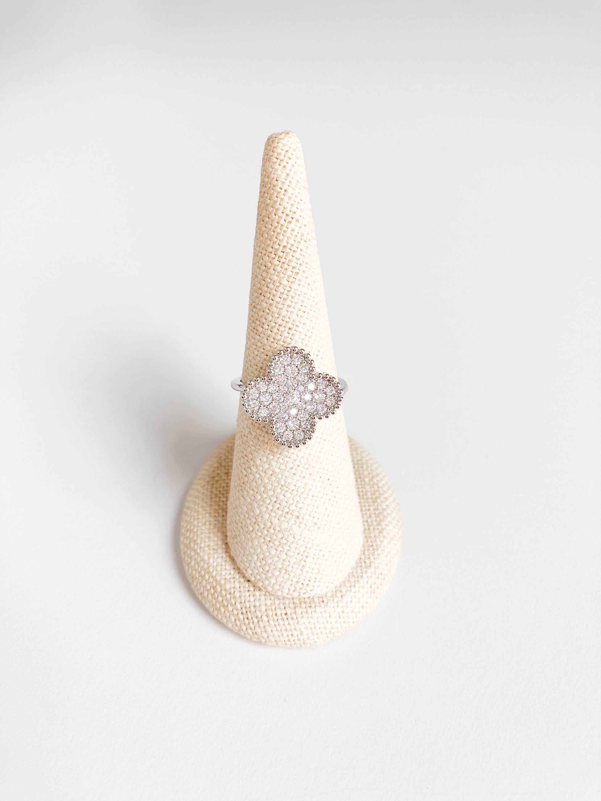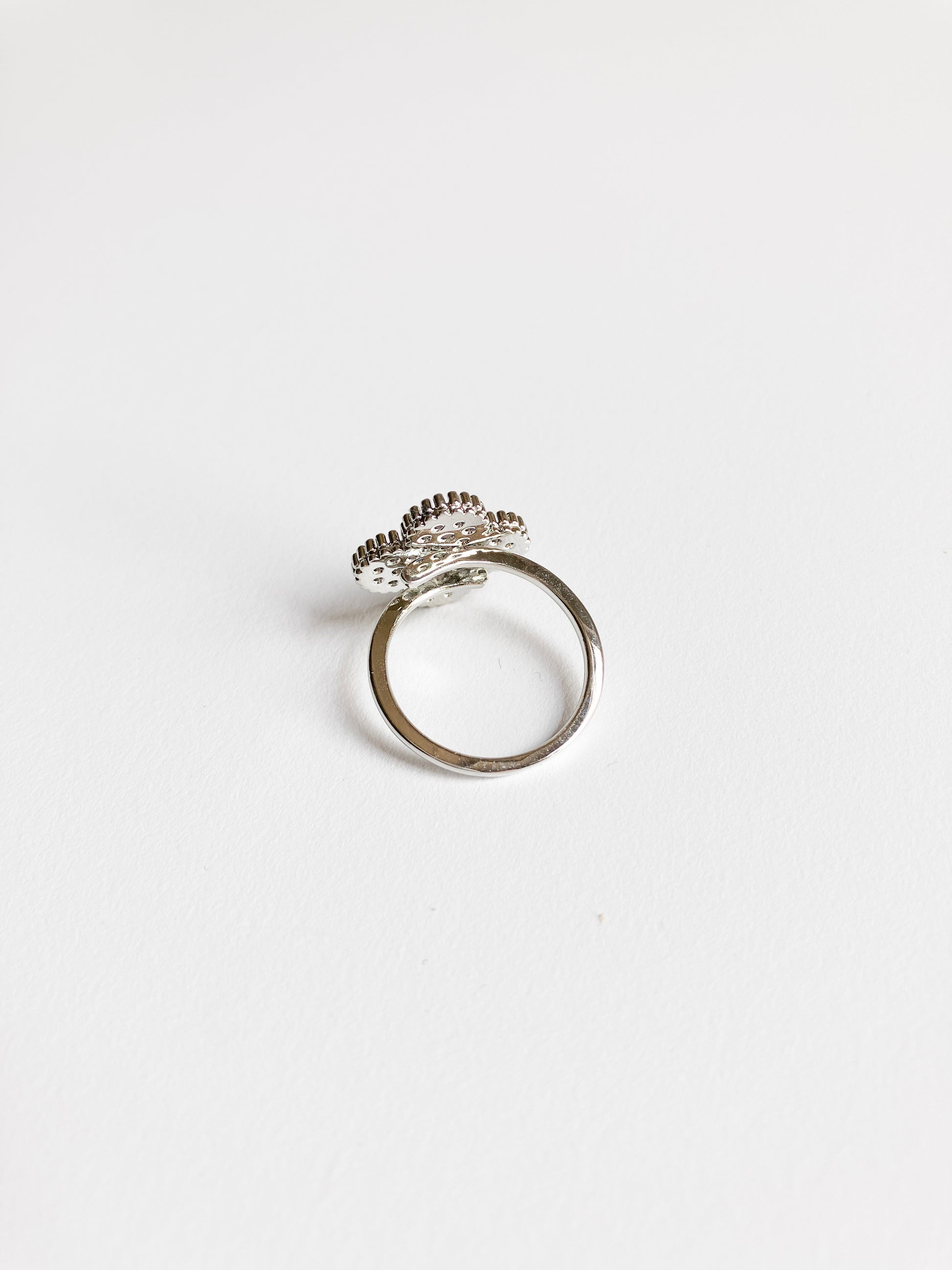 Cubic Zirconia Demi Quatrefoil Motif Ring in Silver