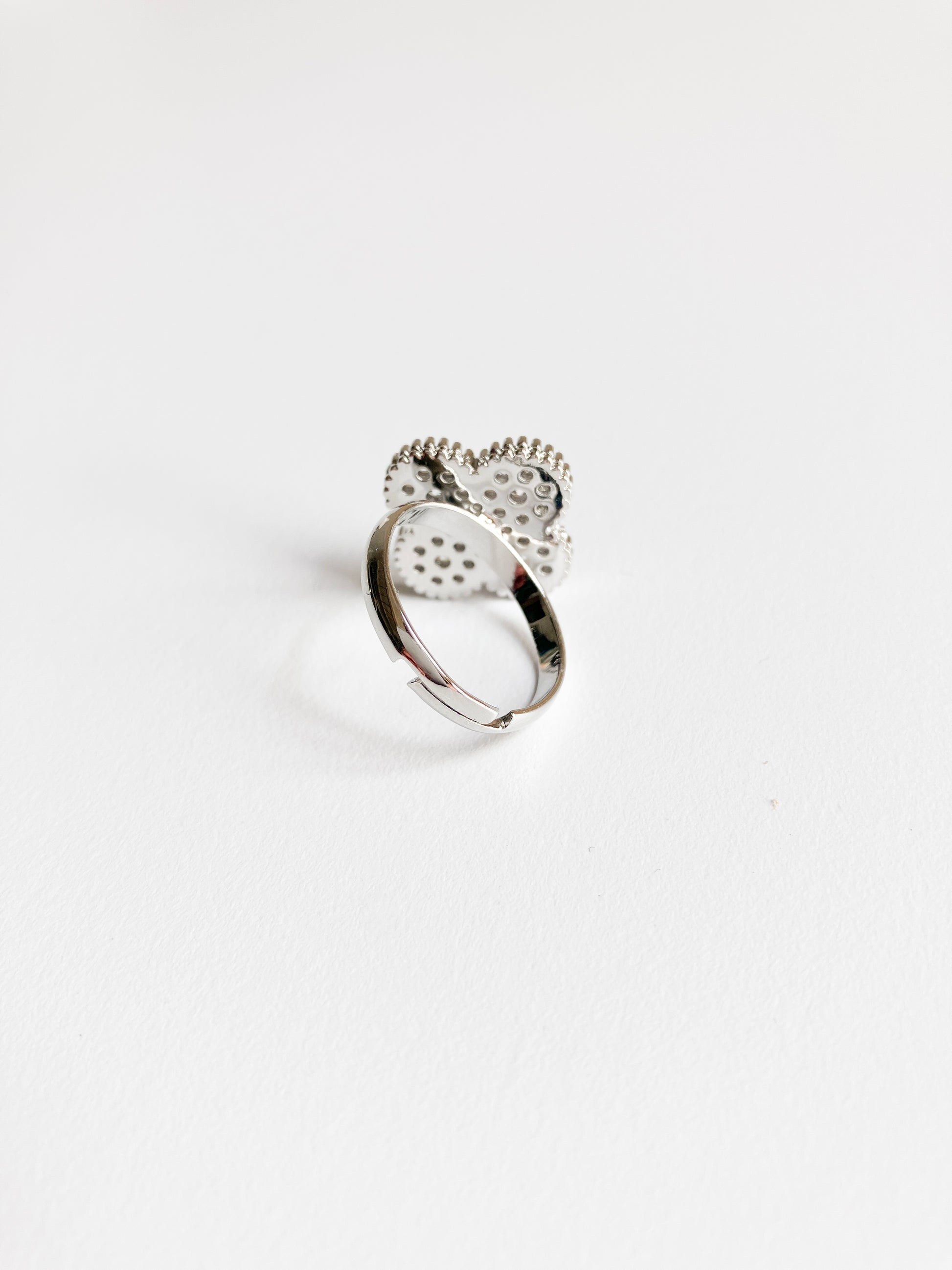 Cubic Zirconia Quatrefoil Motif Ring in Silver