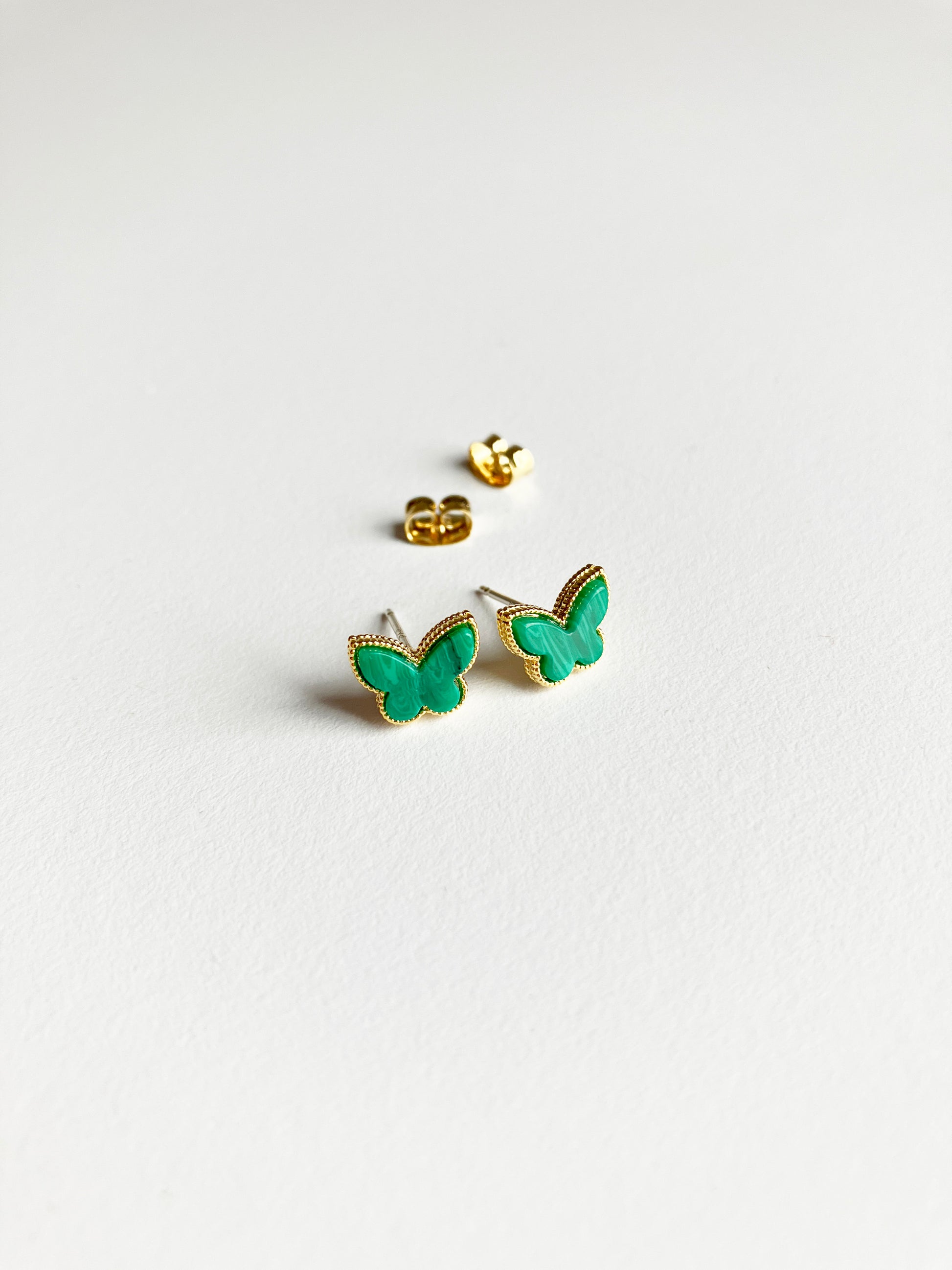 Gorgeous malachite butterflies set in gold plated non-tarnishing surgical steel - pure sophistication with just a hint of whimsy!
