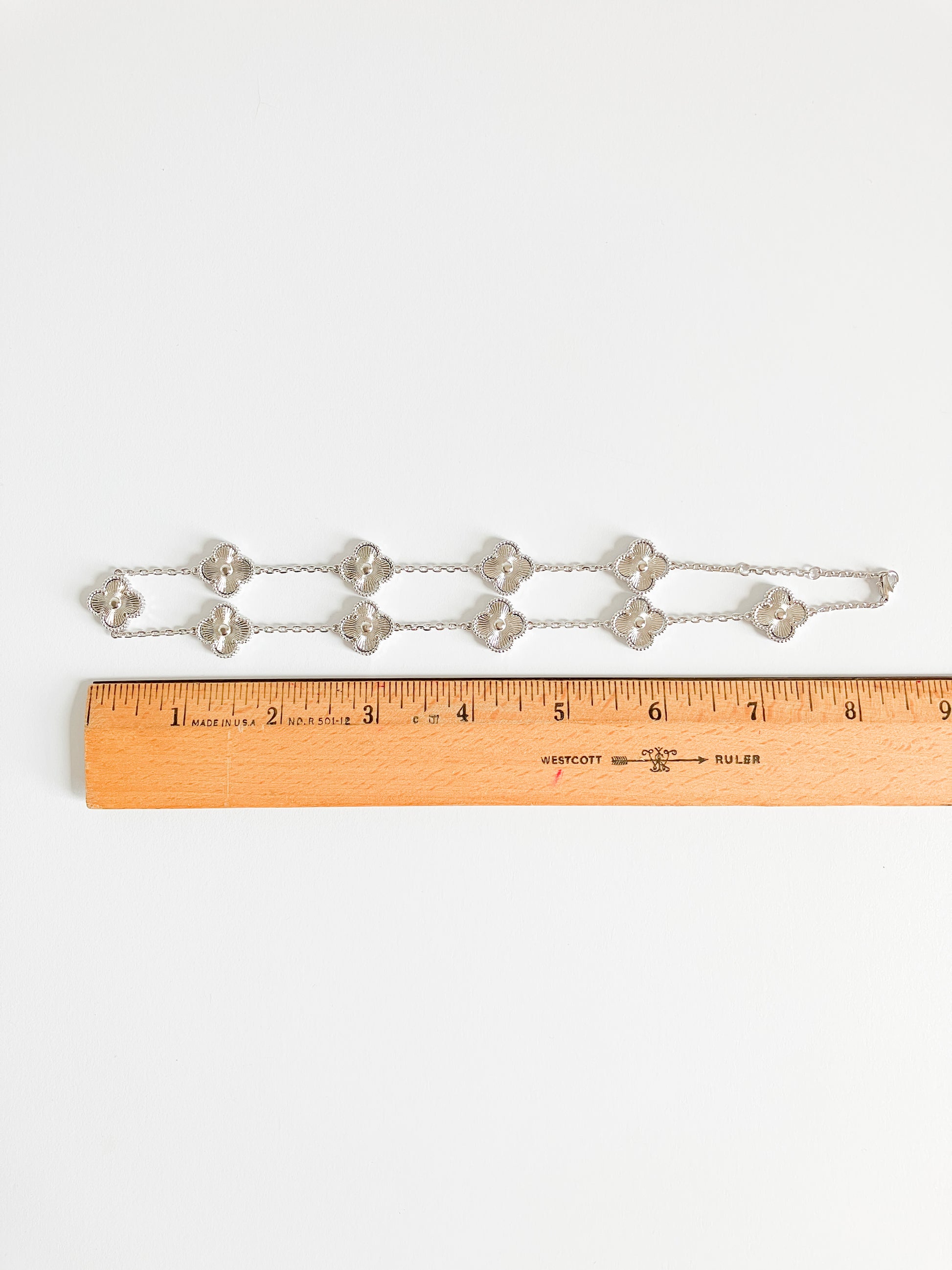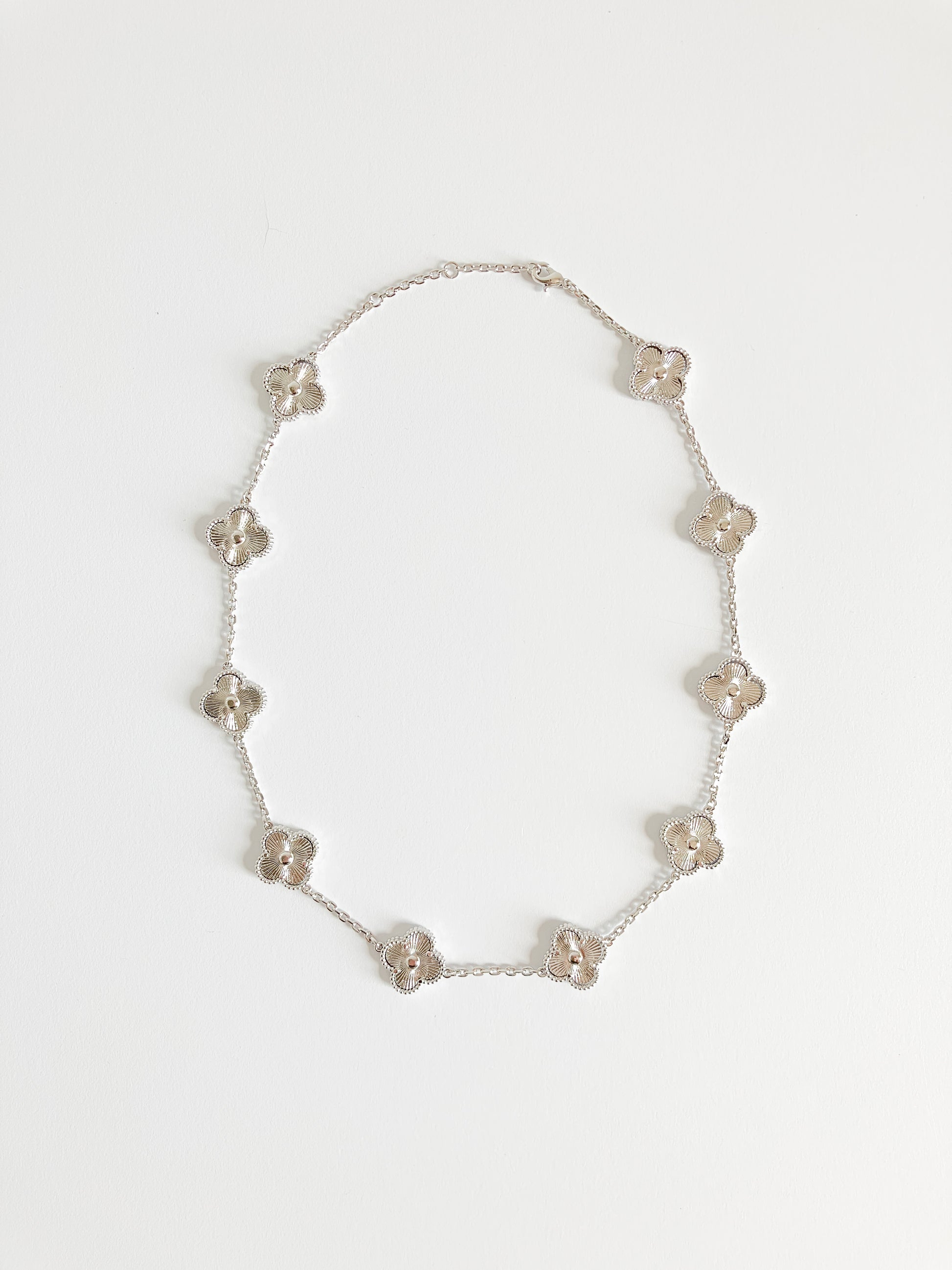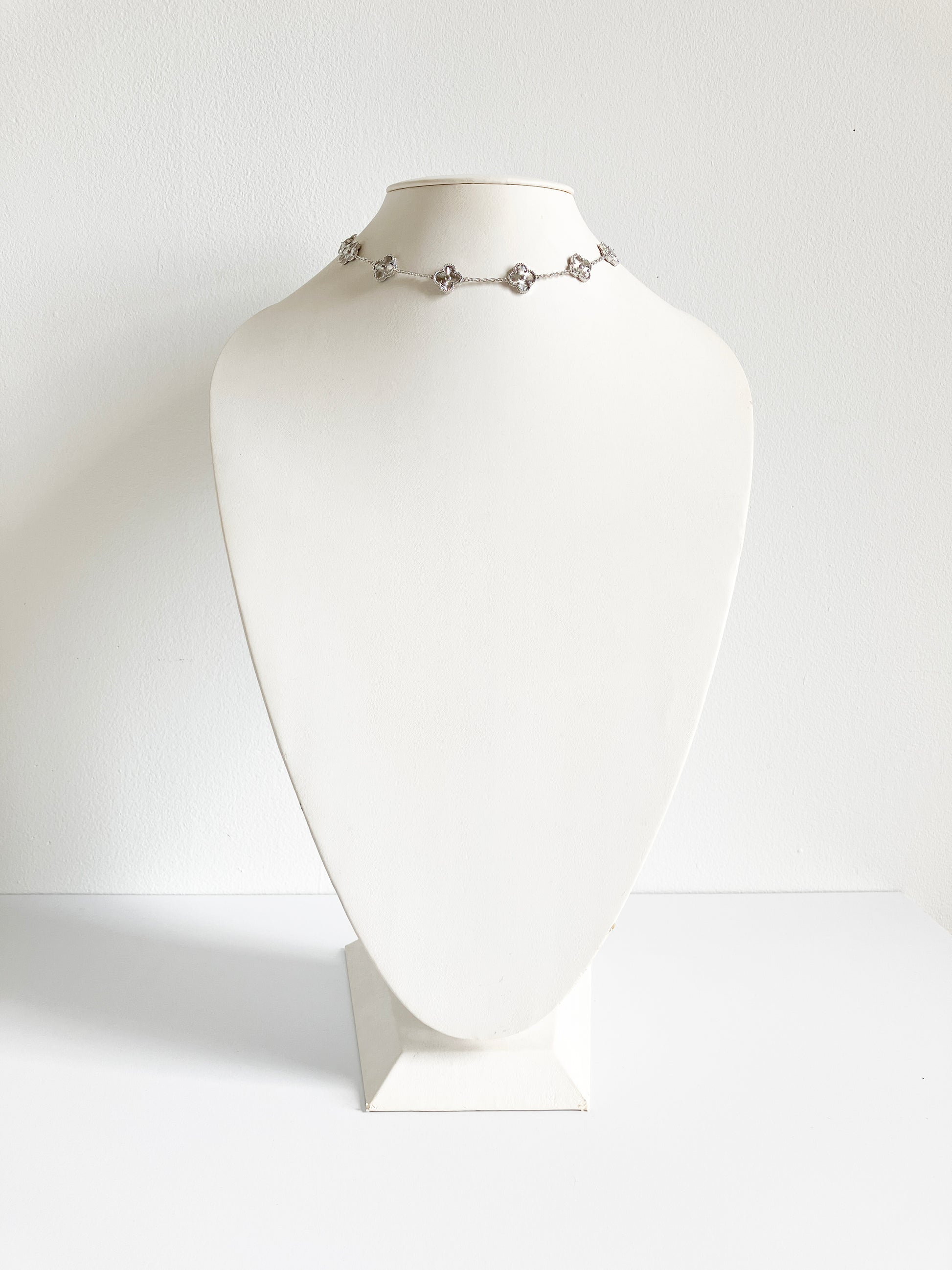 Silver rays burst like star shine over ten stunning quatrefoil motifs in this radiant choker. Silver plated non-tarnishing surgical steel with 17" adjustable chain and lobster clasp. Show them your star power.